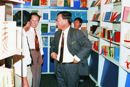 于1996年(時任化學工業(yè)部黨組副書記、副部長)視察化學工業(yè)出版社圖書展臺