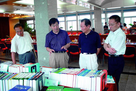 新聞出版總署副署長鄔書林(右一)到化學工業(yè)出版社指導工作